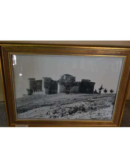 CUADRO, CON MARCO DORADO, CON FOTOGRAFÍA ANTIGUA DEL CASTILLO DE BELMONTE (CUENCA)