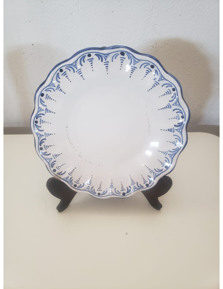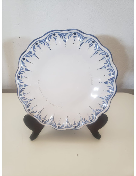 PLATO BLANCO CON DETALLES AZULES EN EL BORDE