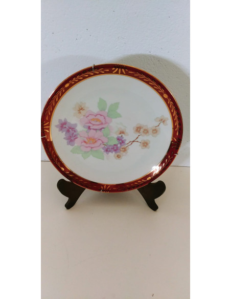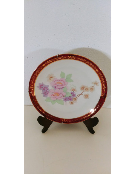 PLATO SARDA BORDE ROJO CON FONDO BLANCO Y DECORACION FLORAL 25 CM DIAMETRO