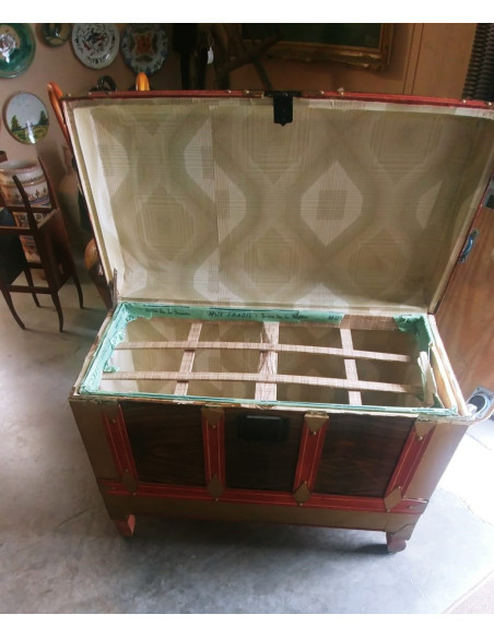 BAUL ANTIGUO DECORACION RAYAS ROJAS