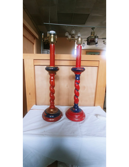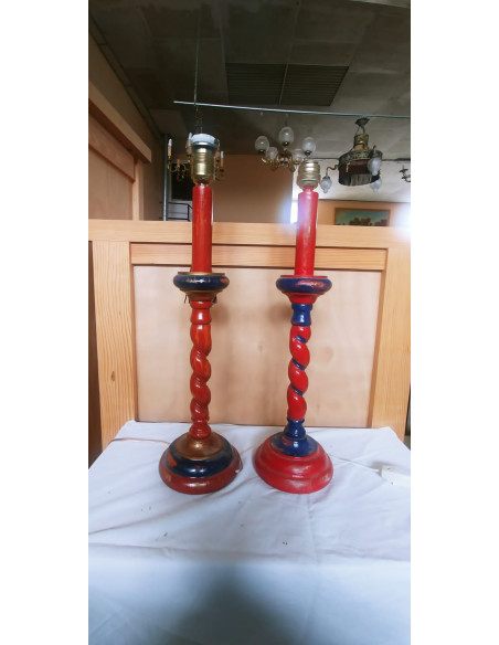 CONJUNTO DE LAMPARAS DE PIE ANTIGUAS DE MADERA ROJAS