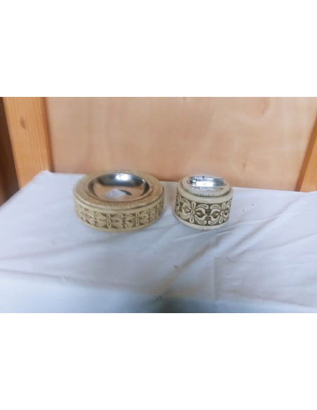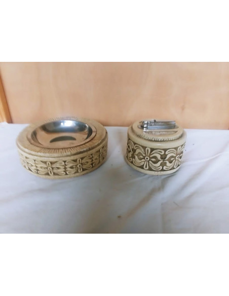 MECHERO Y CENICERO DE PIEDRA Y CHAPA