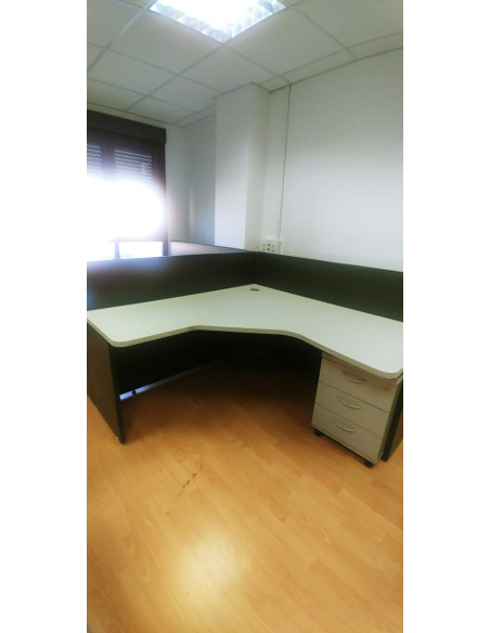 CONJUNTO DE DOS MESAS ESQUINERAS DE OFICINA BLANCO Y NEGRO