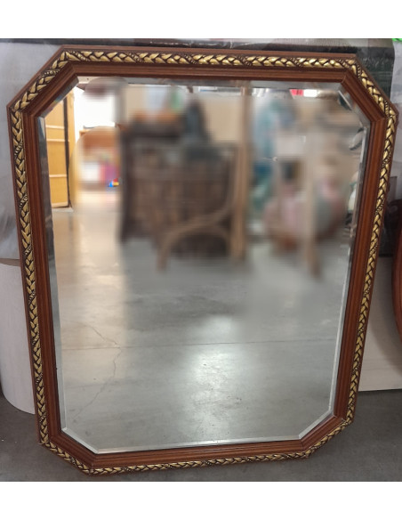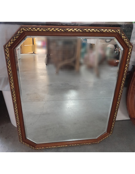 ESPEJO SEMI CUADRADO CON MARCO DE MADERA Y DETALLES DORADOS