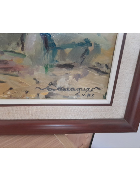 CUADRO PAISAJE PINTADO A MANO ACUARELA, MARCO DE MADERA