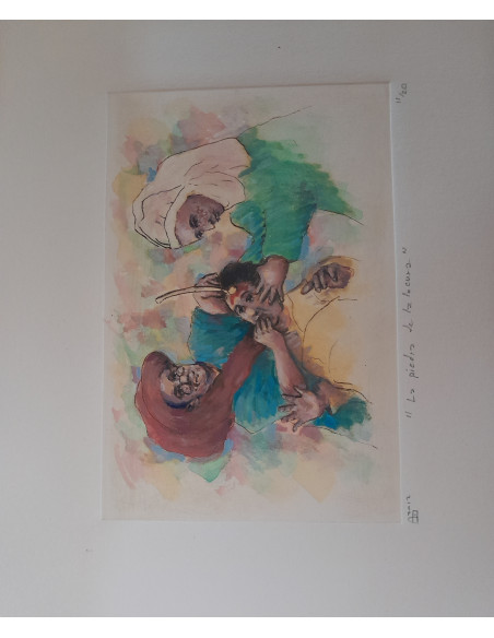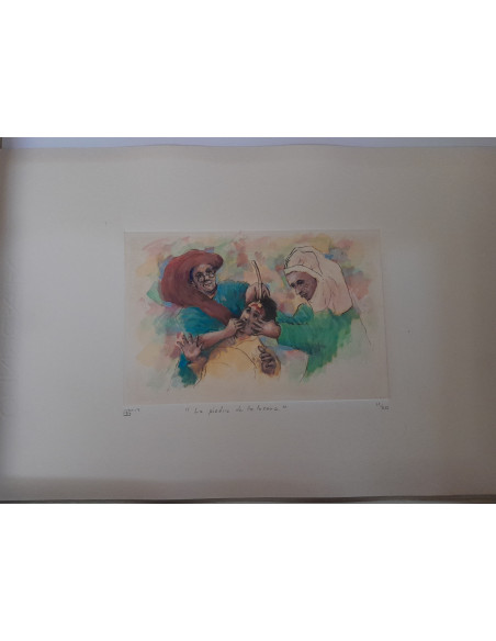 AGUAFUERTE ORIGINAL ILUMINADO A MANO CON ACUARELA Y OLEO (9,7 X 14,7)