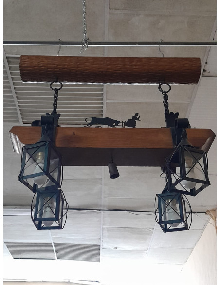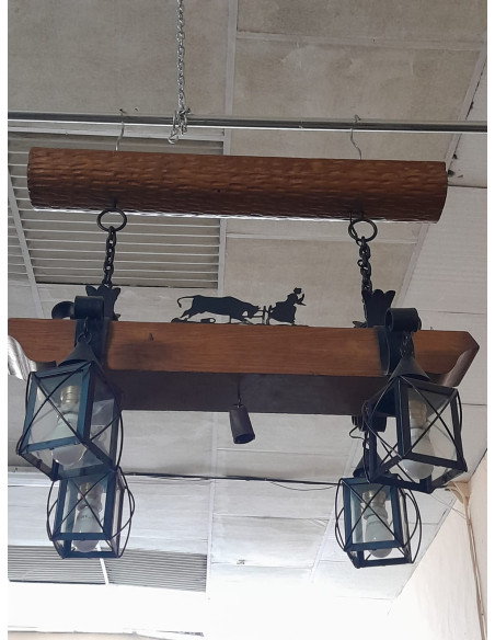 LAMPARA DE TECHO CON CUATRO FAROLES Y MADERA