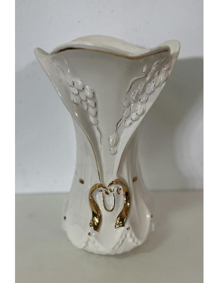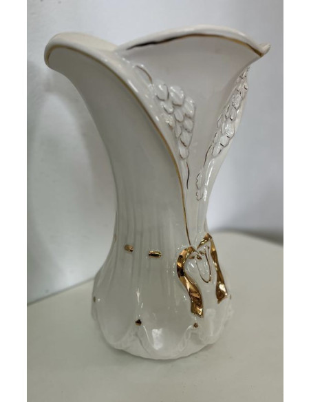 JARRON ARTE MANISES BLANCO CON DETALLES DORADOS