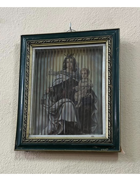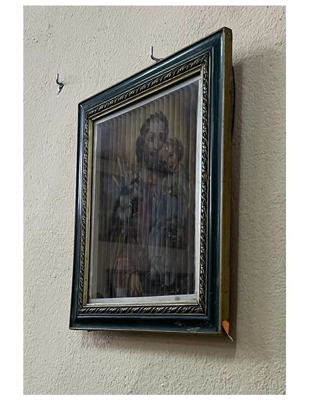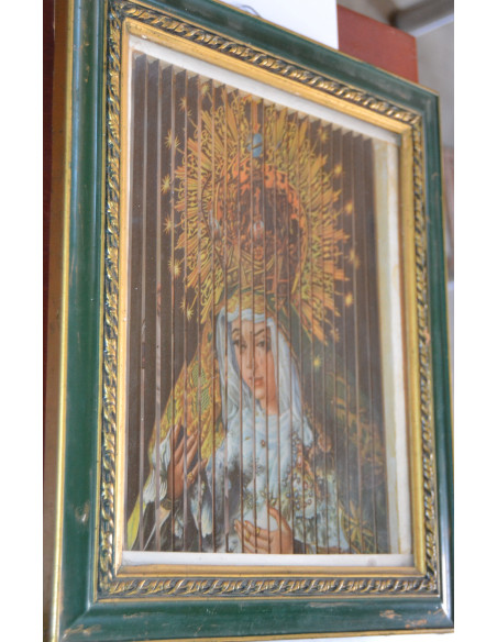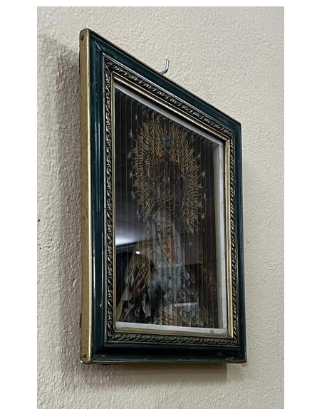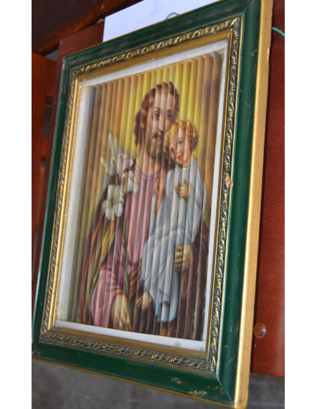 CUADRO CON 3 IMAGENES SEGUN LA PERSPECTIVA DE VISION, CON MARCO DE MADERA VERDE Y DETALLES DORADOS