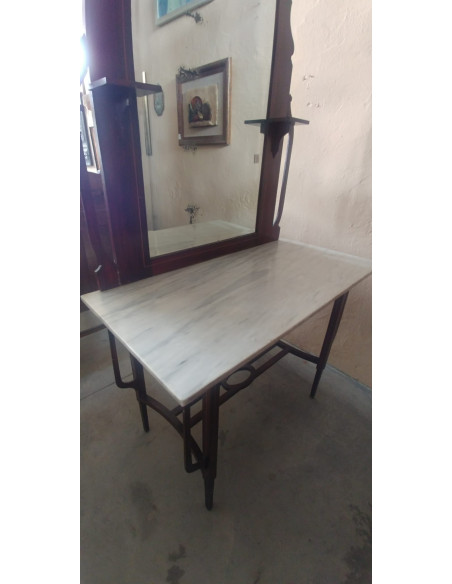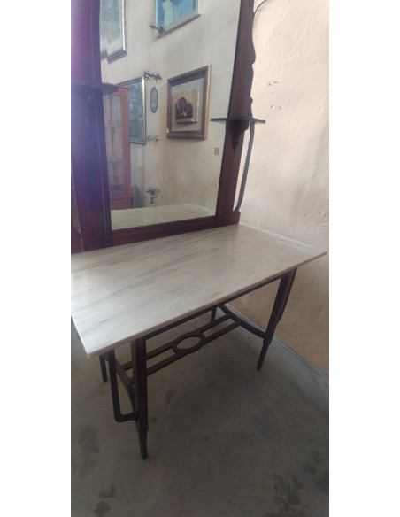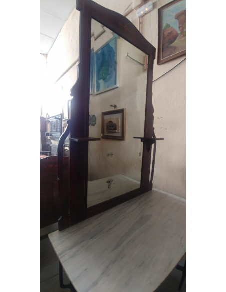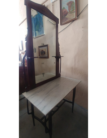 ENTRADITA ANTIGUA CON ESPEJO, BASE DE MARMOL Y PATAS DE FORJA