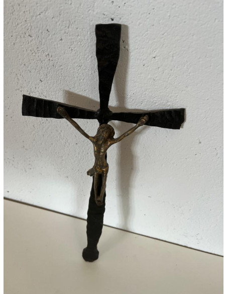 CRUCIFIJO DE FORJA CON CRISTO DE BRONCE
