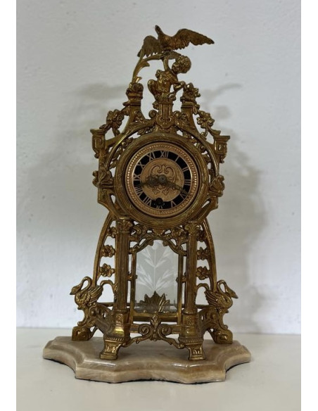 RELOJ BRONCE CON PIE DE MARMOL, NUMEROS ROMANOS