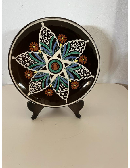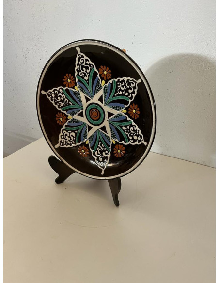 PLATO MARRON OSCURO PEQUEÑO DIBUJADO CON DETALLE FLORAL