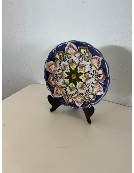 PLATO AZUL PINTADO CON DECORACION FLORAL