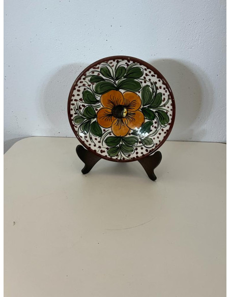 PLATO MARRON FLORAL NARANJA Y VERDE