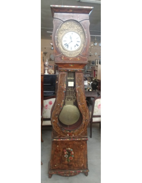 RELOJ DE PISO ANTIGUO FRANCES DE MADERA CON DECORACION FLORAL PINTADA