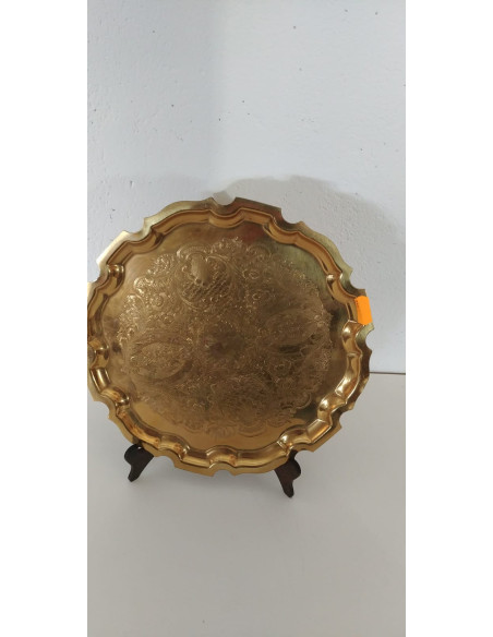 PLATO DORADO ARABE DECORACION FLORAL GRABADA
