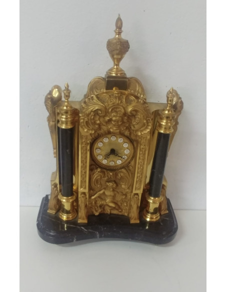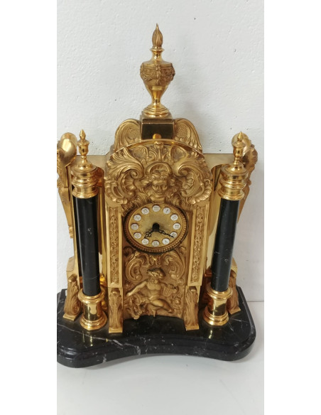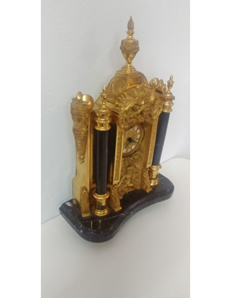 RELOJ ANTIGUO DE MARMOL NEGRO Y MAQUINARIA DORADA