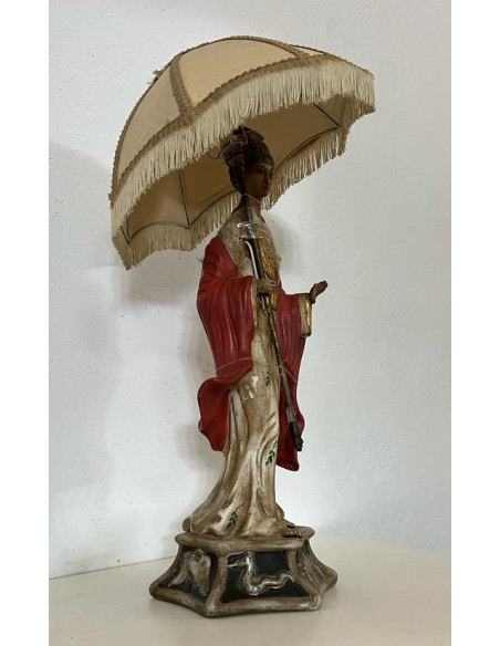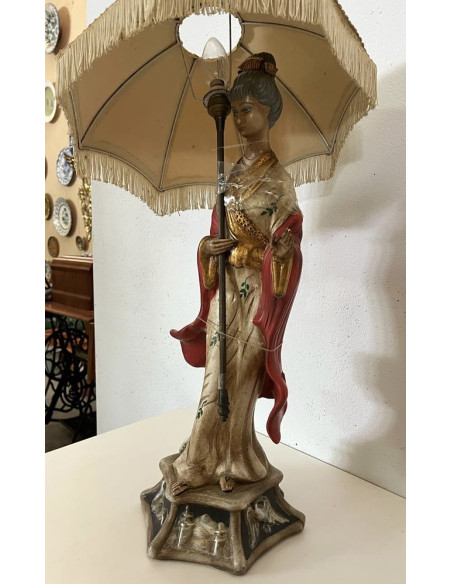 LAMPARA DE FIGURA MUJER CHINA CON PARAGUAS ANTIGUA