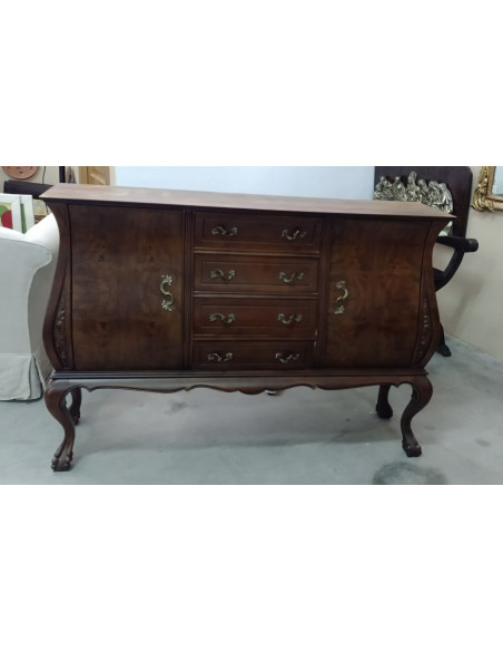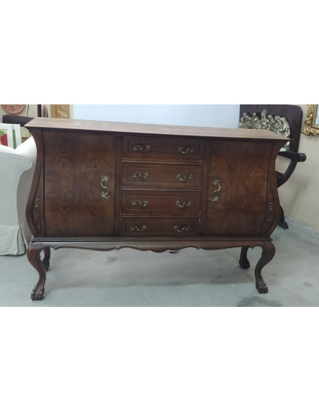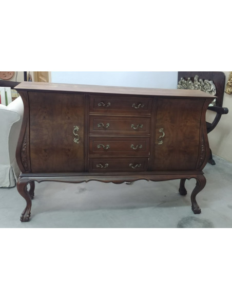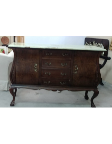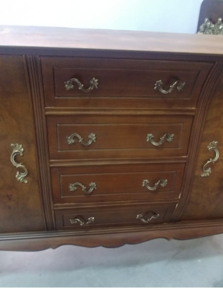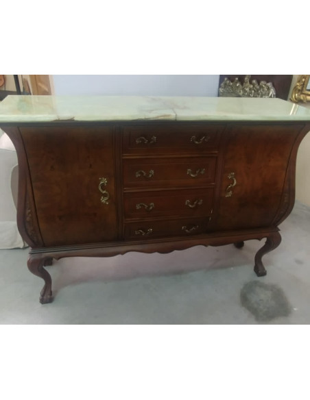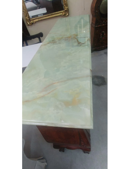 APARADOR ANTIGUO CON BASE DE PIEDRA ONIX VERDINA, CON CUATRO CAJONES Y DOS PUERTAS CON TIRADORES DORADOS