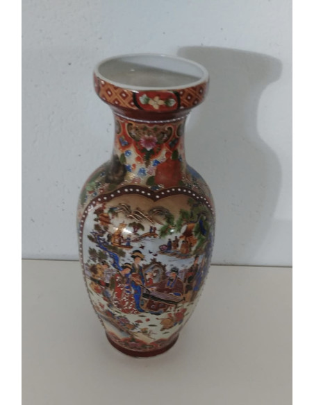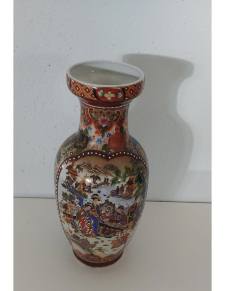 JARRON DE PORCELANA PINTADO CON DECORACION CHINA