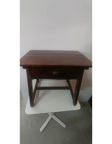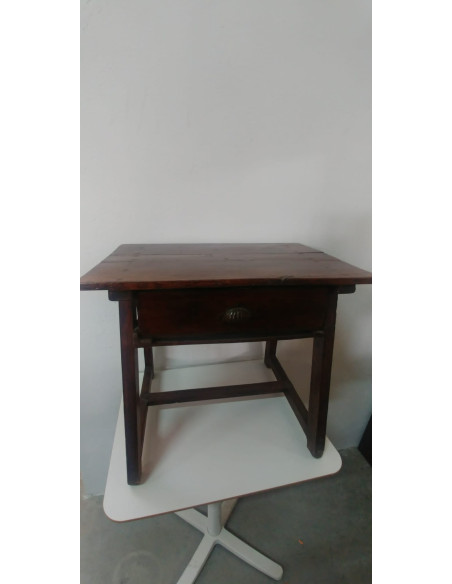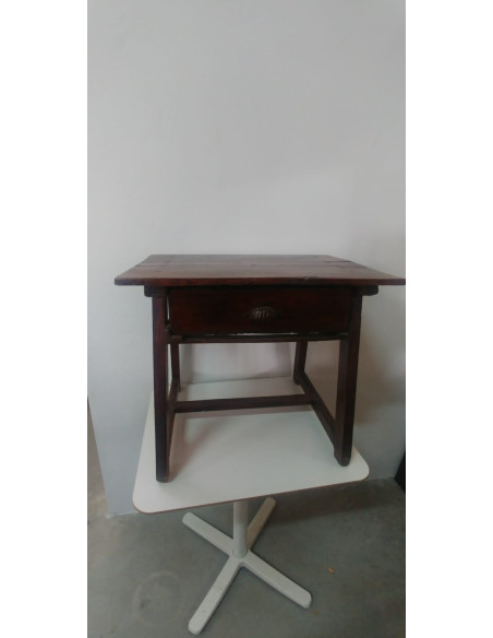 MESA TOCINERA BAJA DE MADERA, MARRON OSCURA CON UN CAJON
