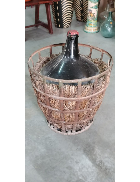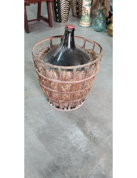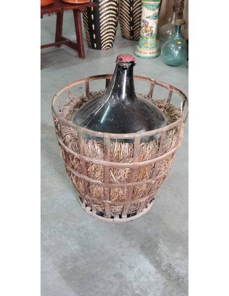 DAMAJUANA GRANDE CON VINO, SOPORTE DE HIERRO Y PAJA