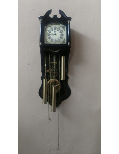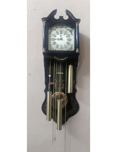 RELOJ DE PARED NEGRO CON 3 PENDULOS, NUMEROS ROMANOS
