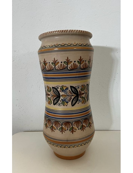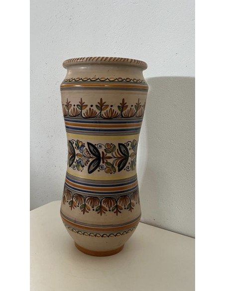 PARAGÜERO DE CERAMICA BEIGE CON DECORAION FLORAL DE COLORES