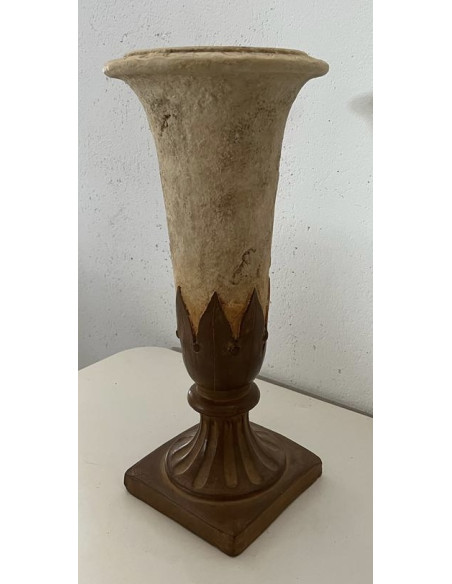 JARRON EN FORMA DE COPA DE PIEDRA BLANNCA Y PIE COLOR OCRE