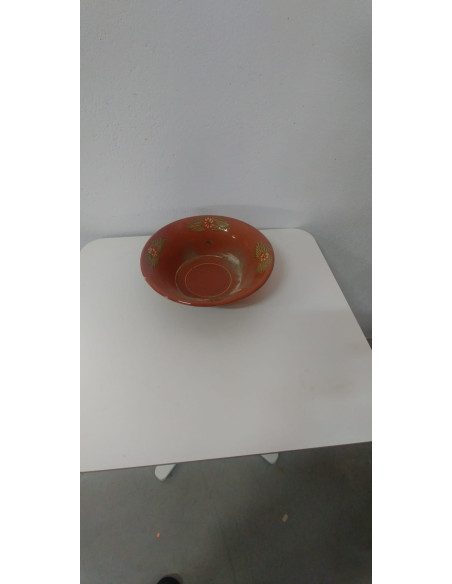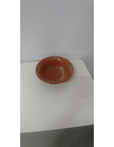 LEBRILLO ESMALTADO COLOR MARRON CON DECORACION FLORAL