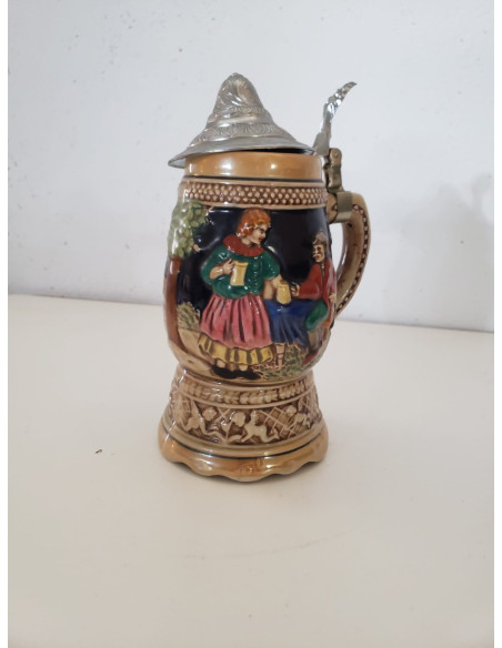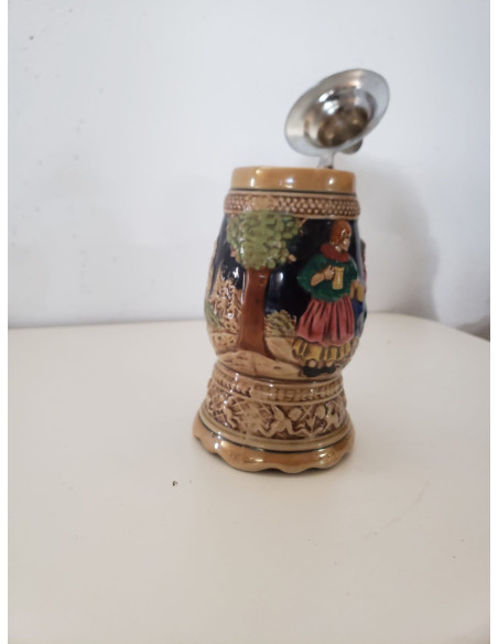 JARRA ALEMANA DE CERAMICA CON MUSICA Y TAPA, DE 16 CM