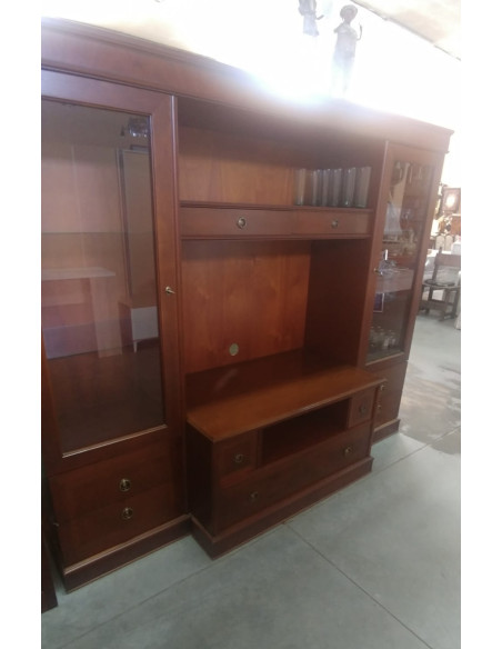 MUEBLE SALON 2 METROS, MARRON, CON DOS CRISTALERAS, ESTANTES Y CAJONES.