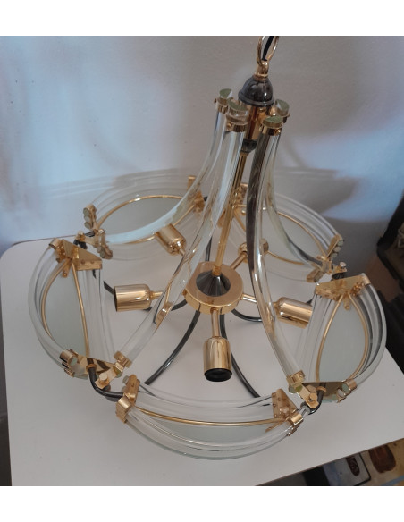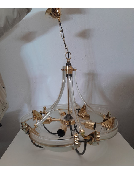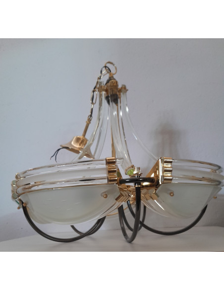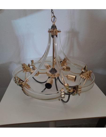 LAMPARA DE TECHO CON CRISTALES VISELADOS Y TUBOS NEGROS CON 5 FOCOS DORADOS