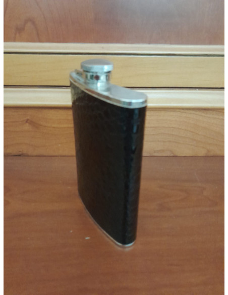 PETACA CON PIEL NEGRA SU USO SUELE SER PARA BEBIDAS DESTILADAS