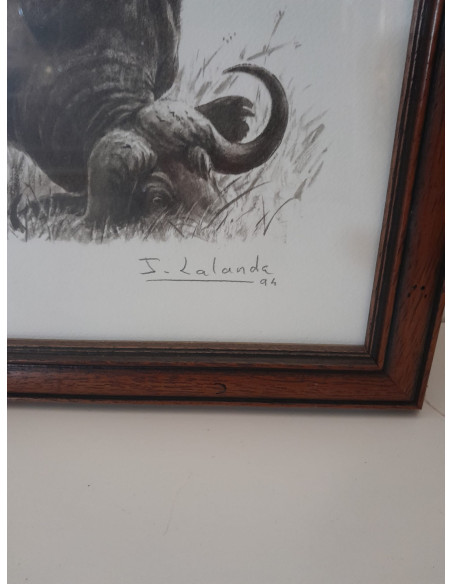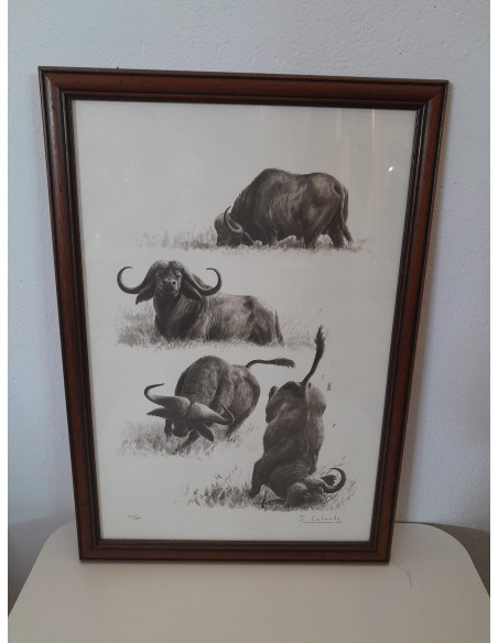 CUADRO DE BUFALOS DE LALANDA CON MARCO DE MADERA