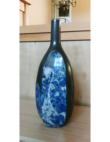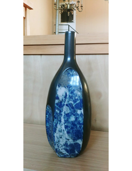 JARRON ALTO DE CERAMICA NEGRO Y AZUL PARA DECORACION