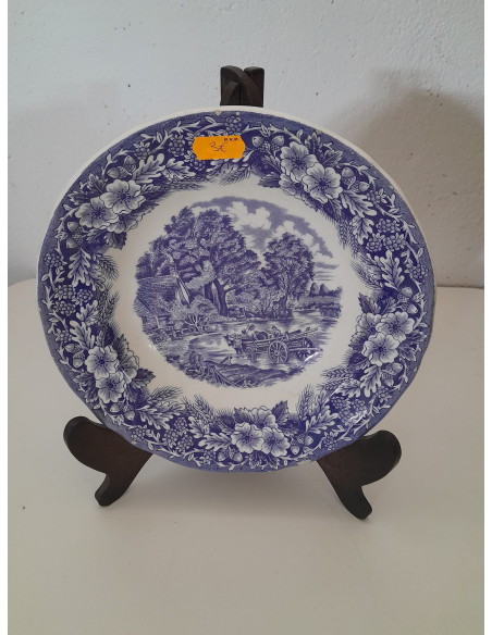 PLATO DE SEGOVIA, DE CERÁMICA CON DECORACION AZUL