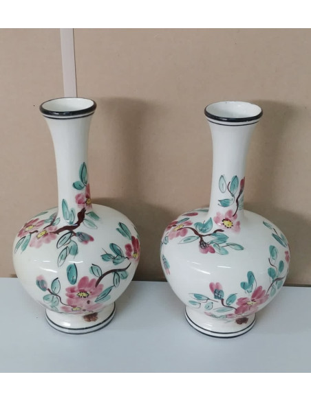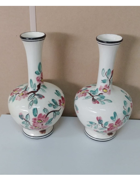 JUEGO DE DOS FLOREROS CON DECORACION FLORAL, CUELLO ESTRECHO