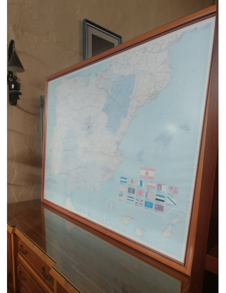 CUADRO MAPA DE ESPAÑA GRANDE CON MARCO DE MADERA