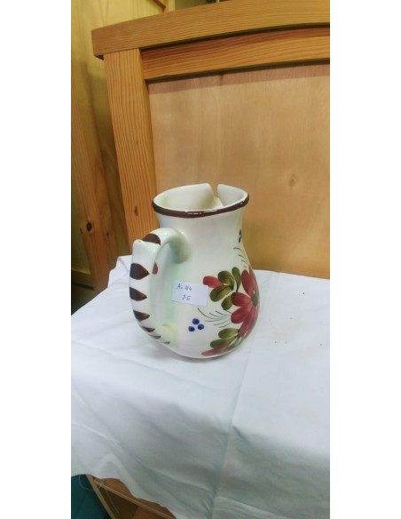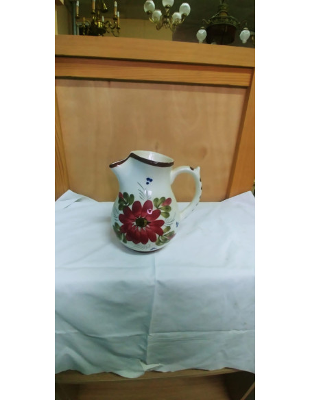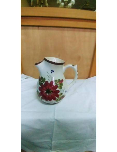 JARRON CON ASA BLANCO CON FLOR ROJA, DE CERAMICA