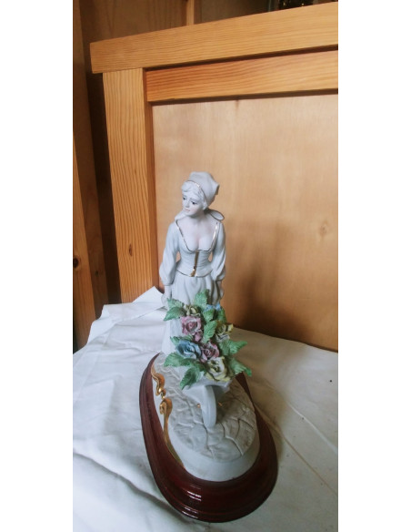 FIGURA DE CERAMICA, MUJER CON CARRETILLA DE FLORES