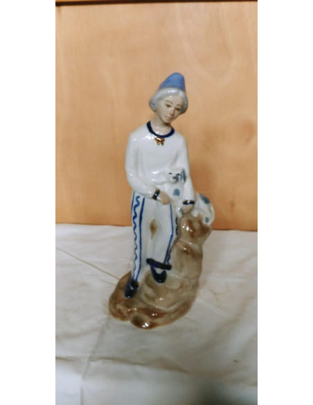FIGURA PARA DECORACION DE CERAMICA MUJER SENTADA CON PERRITO