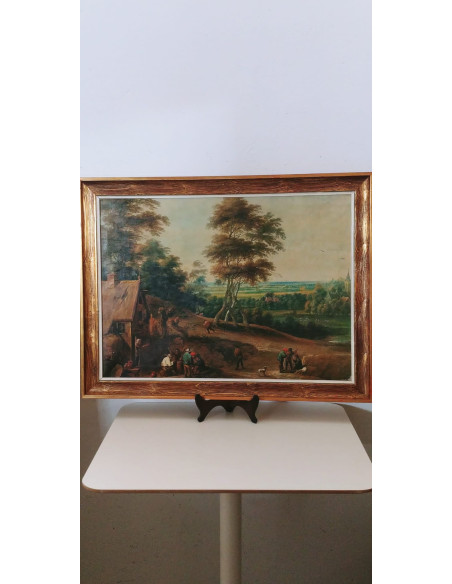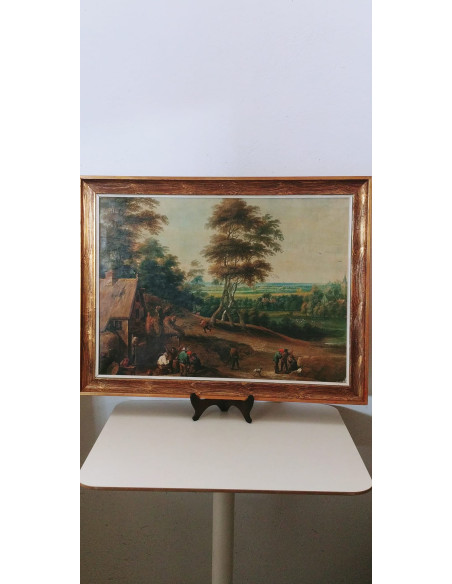 CUADRO PINTADO A MANO PAISAJE ARBOLES CON MARCO DE MADERA