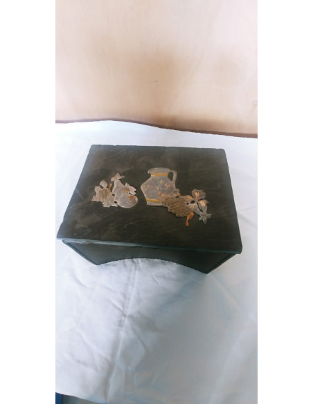 CAJA DECORATIVA COMPUESTA DE TRES MATERIALES ALUMINIO, PIZARRA Y PLOMO