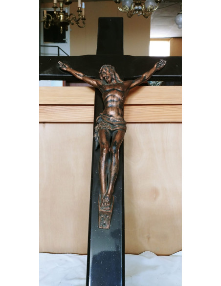 CRISTO EN CRUZ DE MADERA NEGRA
