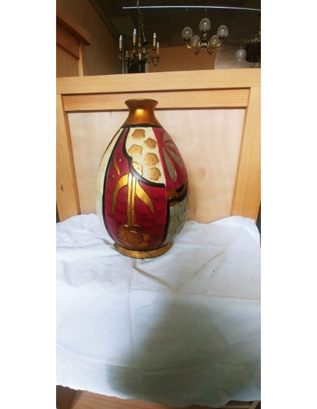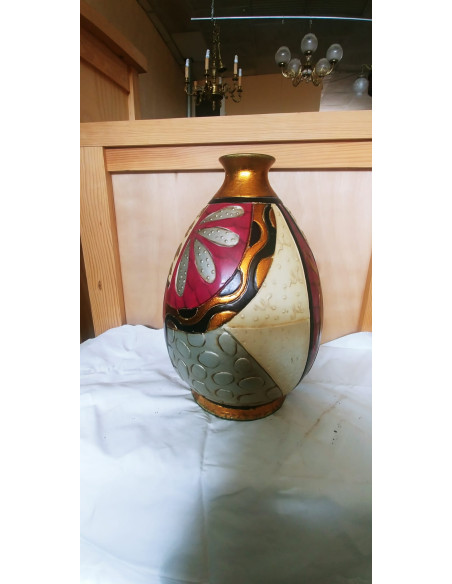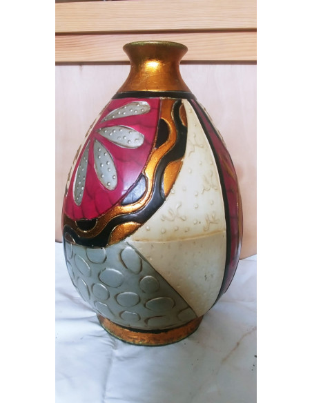JARRON FLORERO DE CERAMICA DECORACION DORADA, BEIGE, ROSA Y BEIGE