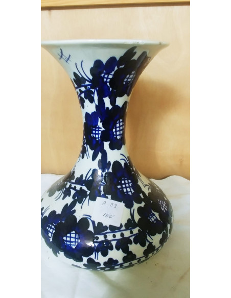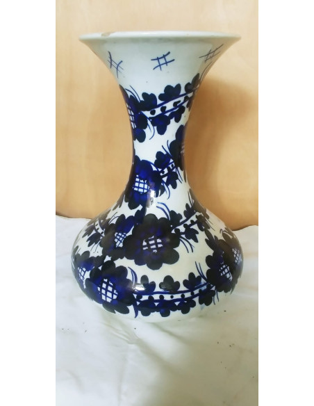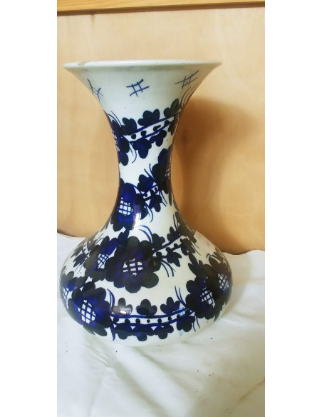 JARRON FLORERO DE CERAMICA FONDO BLANCO Y FLORES AZULES