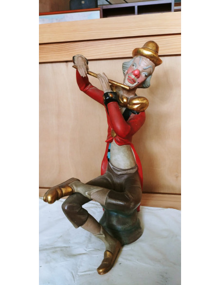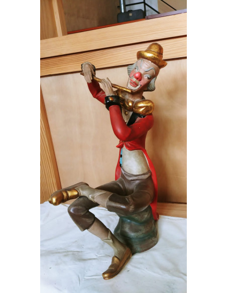 FIGURA DE CERAMICA PAYASO CON FLAUTA PARA DECORACION