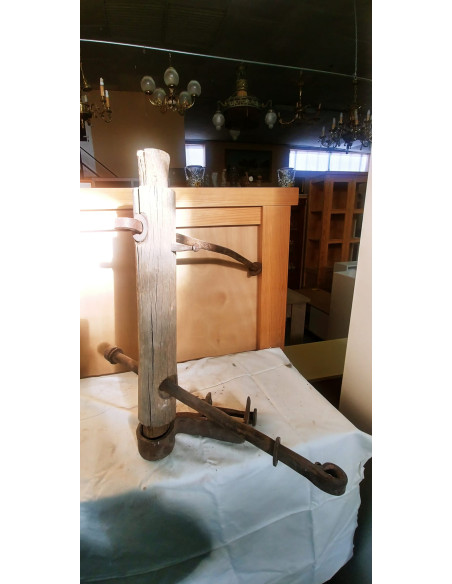 ANTIGUO GANCHO PARA CUERDA DE HIERRO Y MADERA